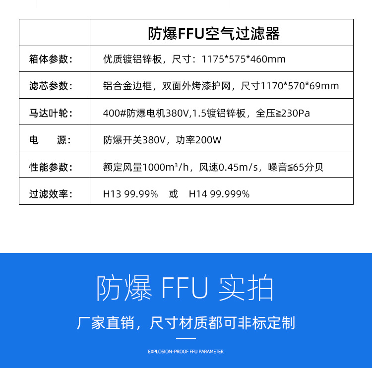 防爆FFU空氣凈化器工業大風FFU風機過濾單元百級層流罩高效過濾器